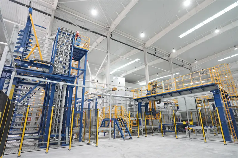 QGM-maskinproduktionslinjen antar en helautomatiserad design och är utrustad med avancerad utrustning som servopalleteringssystemet och helautomatiska mor-och-barn bilsystem som är oberoende utvecklat av QGM, för att realisera full processautomation från råmaterialbearbetning till färdig produktstapling. Bland dem säkerställer högprecisionspositioneringssystemet och den intelligenta palleteringsroboten en stabil och effektiv produktion, vilket minskar den totala energiförbrukningen med 25 % och arbetskostnaderna med 40 %.