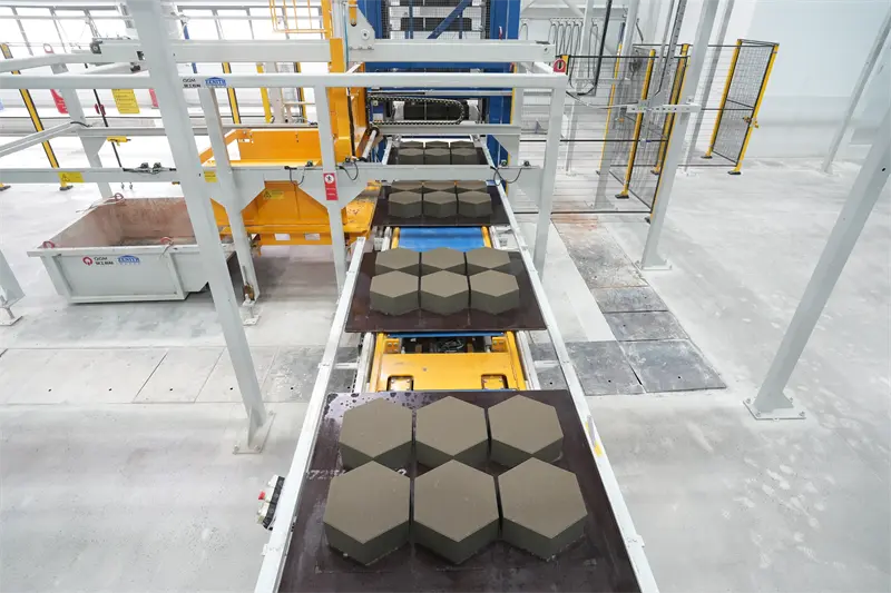 Nyligen har den helautomatiska produktionslinjen för betongblock, anpassad och utvecklad av QGM för ett stort inhemskt byggmaterialföretag, framgångsrikt slutfört installation och driftsättning och är på väg att tas i produktion och drift. Denna innovativa produktionslinje använder stenpulver, en biprodukt från sand- och grusbearbetning, som huvudråvara, och producerar högkvalitativa betongprodukter genom intelligenta processer, som inte bara realiserar resursåtervinning, utan också skapar betydande ekonomiska fördelar för kunderna.