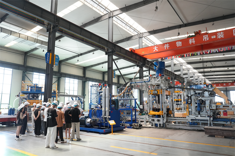 I produktionsverkstaden observerade eleverna hela produktionslinjen för eko-tegel på nära håll. Från den exakta bearbetningen av råvaror till den komplexa processen att producera den färdiga produkten, visar varje steg effektiviteten och precisionen i automatiserad produktion. Avancerad produktionsutrustning fungerade smidigt och effektiva automatiserade processer förbättrade produktionseffektiviteten avsevärt, samtidigt som ett strikt kvalitetskontrollsystem säkerställde hög produktkvalitet. Eleverna pausade ofta för att observera och uttryckte stort intresse för den moderna produktionsmodellen.