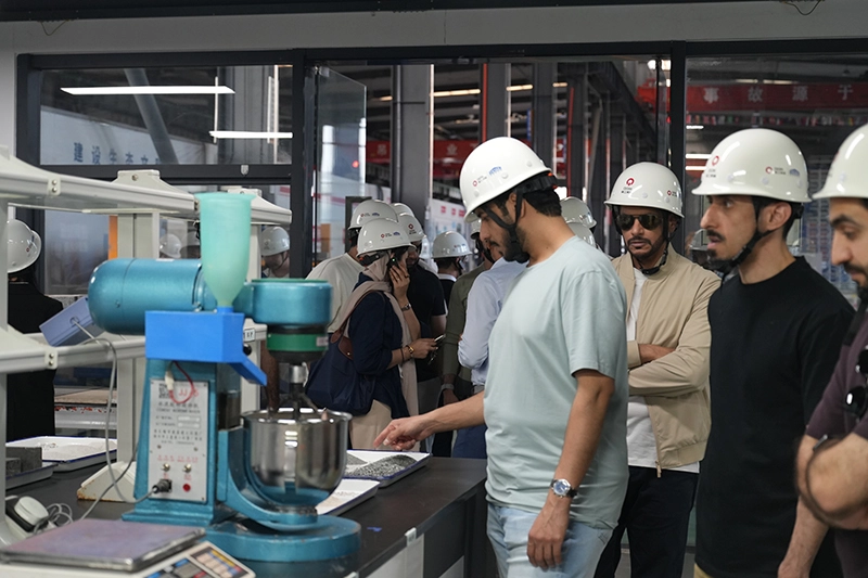 I tegeltillverkningslabbet bevittnade delegationen Quanzhou Machinerys "skräddarsydda" FoU-kapacitet. Som en forsknings- och utvecklingsbas gemensamt etablerad med universitet som Fuzhou University och Beijing University of Civil Engineering and Architecture, är den utrustad med avancerad materialtestning och formelutvecklingsutrustning, som kan tillhandahålla personliga lösningar för tegeltillverkning baserade på egenskaperna hos råmaterial, klimatförhållanden och projektkrav i kundens region.