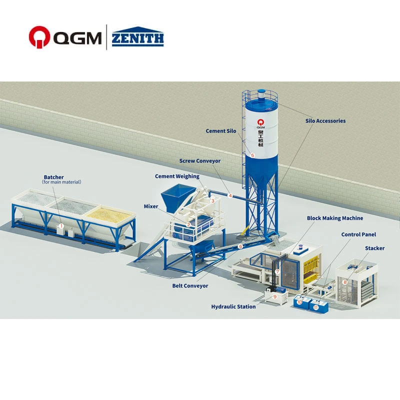 QT6 Automatic Block Making Machine är en automatisk blockmaskin med egenskaperna för kostnadseffektiv och bra prestanda. Samma som QT10, båda är designade och producerade av QGM oberoende. Det kan också användas i stor utsträckning inom kommunalteknik, byggnadsarbete och trädgårdskonstruktion. Råmaterial: Krossad sten, sand, cement, damm och kol flygaska, aska, slagg, gång, grus, perlit och annat industriavfall.